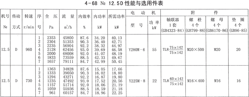 (1)葉輪由12片后傾翼形葉片焊接于曲線形輪蓋與平板型的轱盤中間,為鋼板制造,并經(jīng)過靜,動平衡校正,空氣性能良好,效率高,運(yùn)轉(zhuǎn)平穩(wěn)。