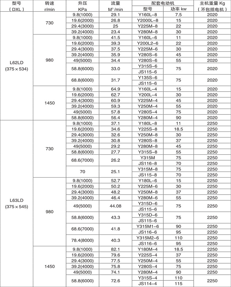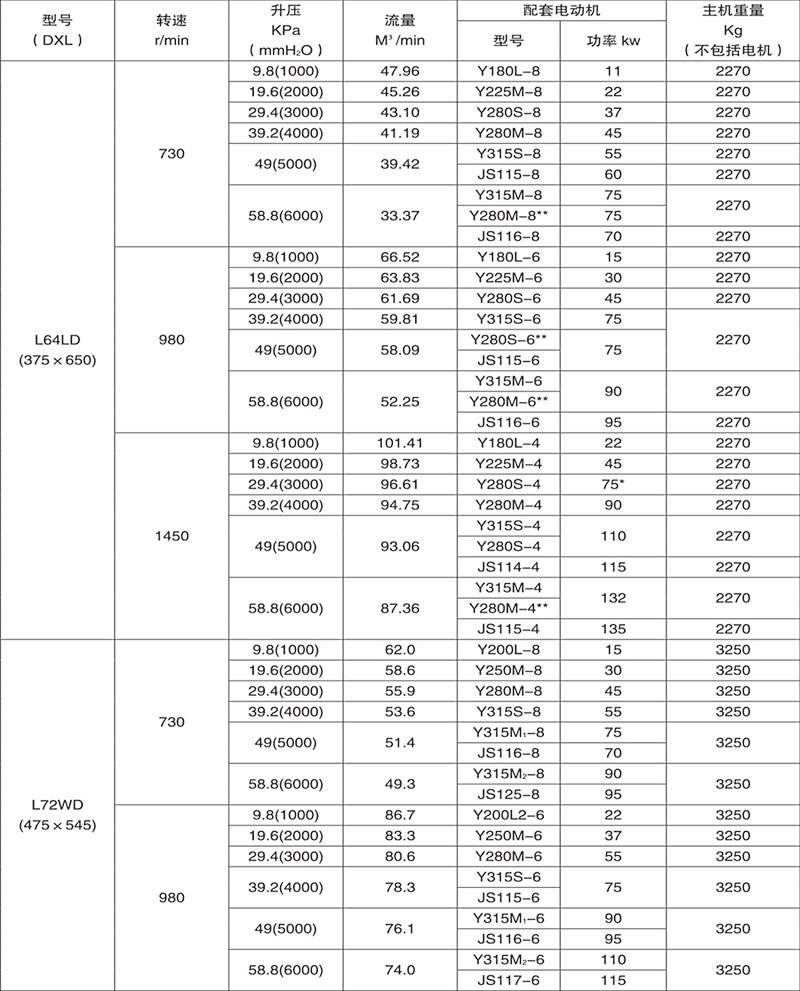 羅茨鼓風(fēng)機(jī)性能參數(shù)表