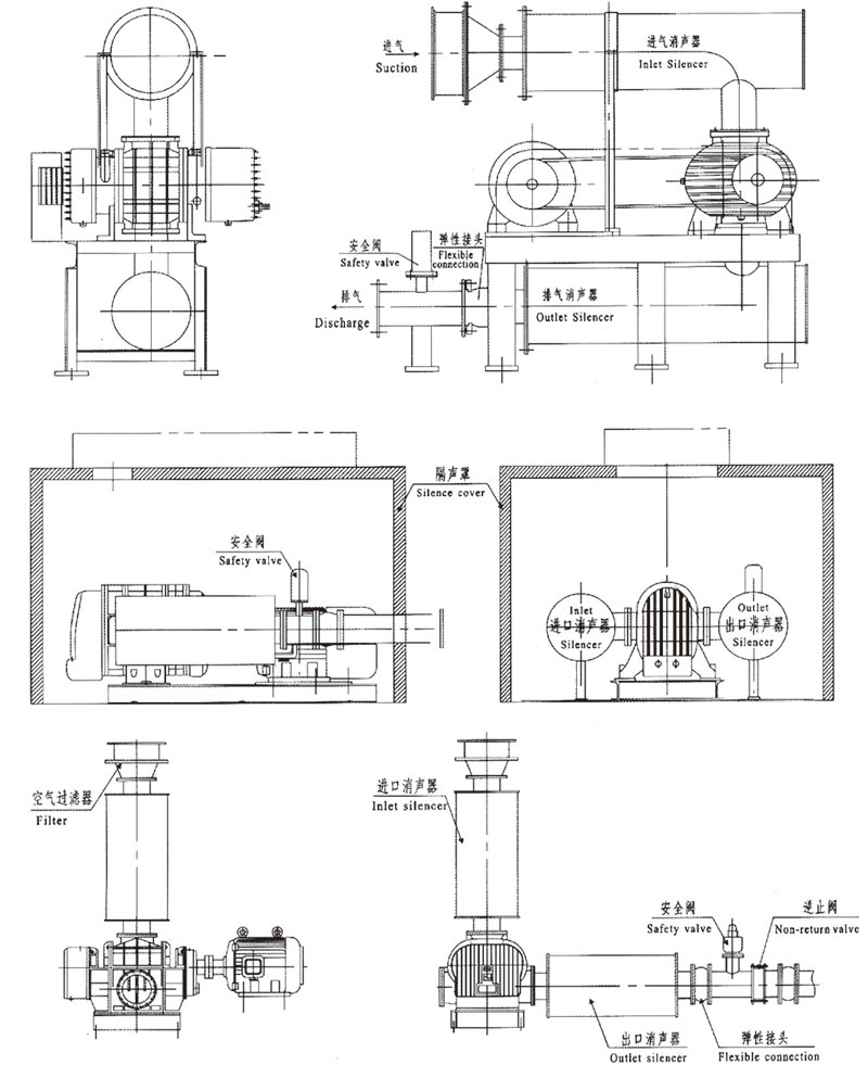 Z型消聲器可根據(jù)需要為羅茨鼓風(fēng)機的進、出口法蘭直聯(lián),也可串接在進、排的管道中使用。